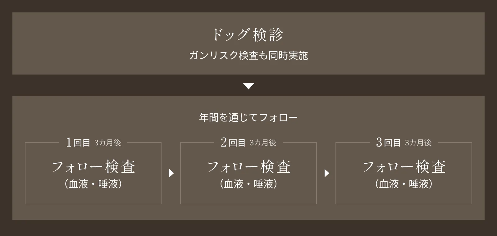 This is a course that adds annual follow-up to the Super Midtown Dock Royal. Annual follow-up, which is conducted once every three months, includes saliva cancer risk testing and blood tests including tumor markers. This allows for early detection of cancer risks and physical abnormalities that are difficult to detect with just annual imaging tests.